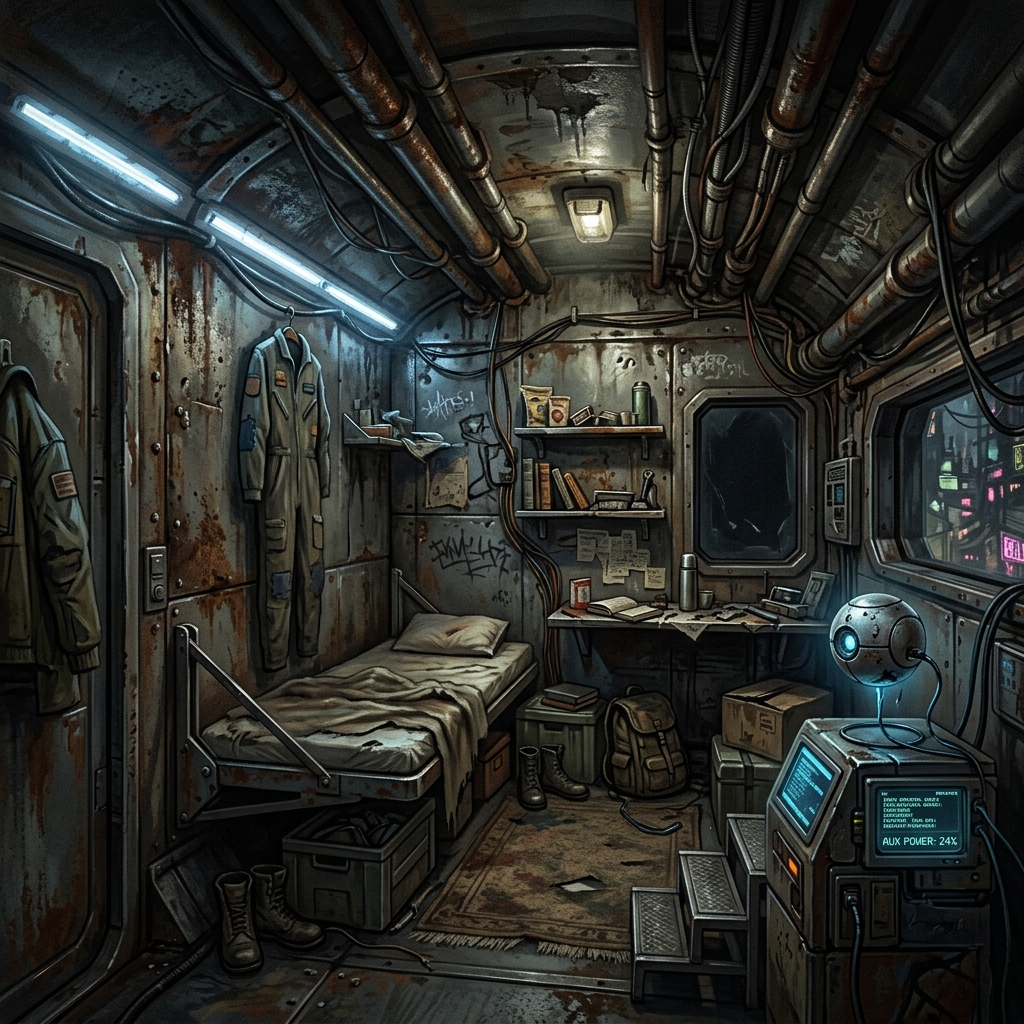 Fig.03 — 下層居住区の典型的な居住空間。廃棄コンパートメントを転用したもの。