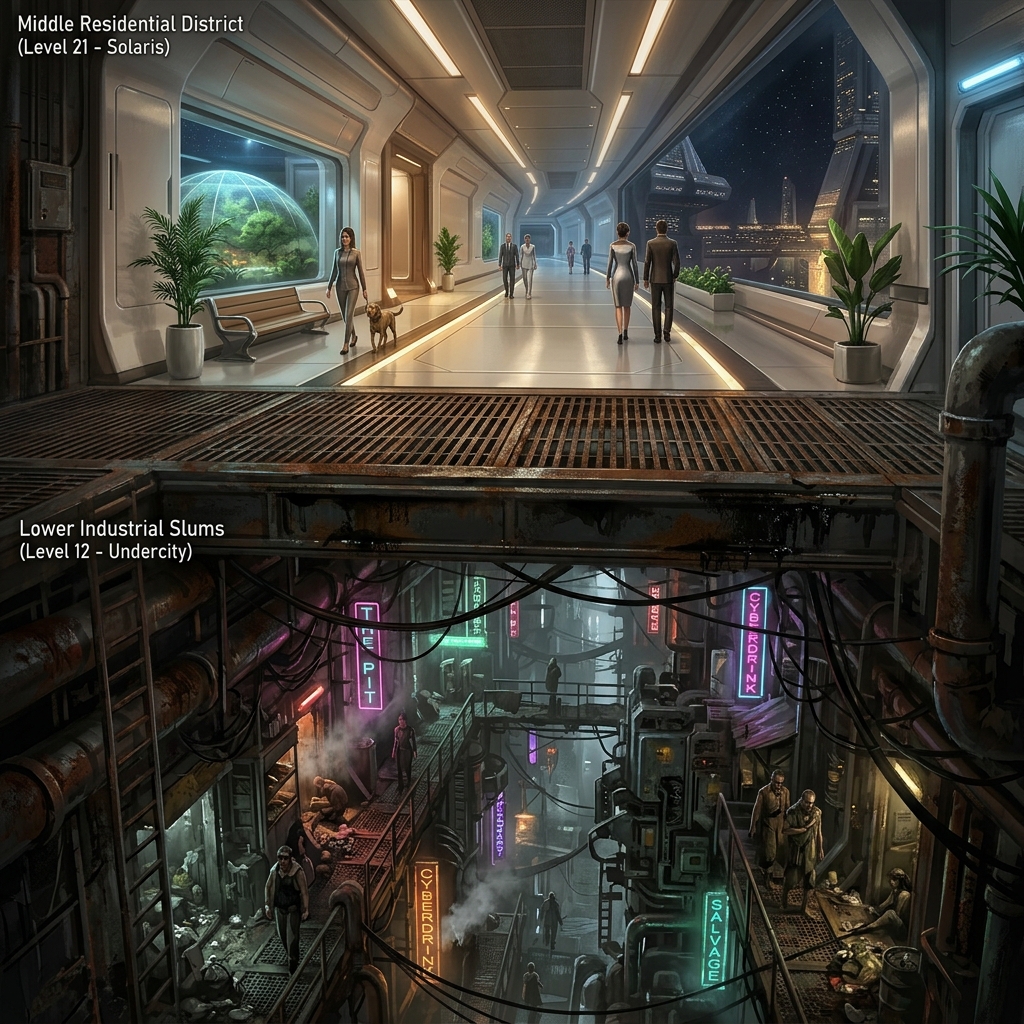 惑星C66は下層・中層・上層の三つの居住区画に分かれた階層社会である。