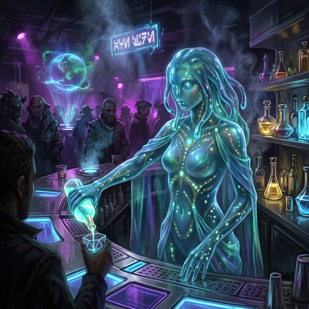 ここでは異星種族の従業員が、それぞれの種族の特性を活かしたサービスを提供している。
